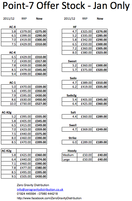 Zero Gravity have released their latest Point-7 January Offers with up to 30% discount available.