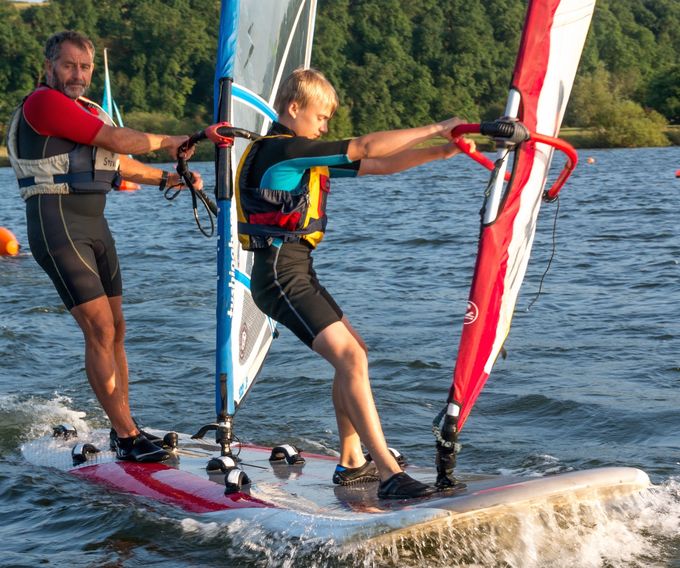 There are opportunities for you to go windsurfing and sailing through the day. 10am to 4pm. Please bring shoes that don’t matter getting wet (with good grip) and if it is wet or windy waterproofs. We will have Buoyancy aids available, if you want to windsurf a wetsuit is necessary.