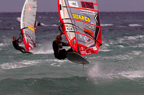 Van Der Steen and Cyril Moussilmani (Starboard / North) lost out before the finals, making more room for Dunkerbeck to cruise through.