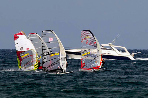 The conditions really backed off for elimination 8, spread over three days. It wasn’t until the closing hour of the competition that Catalunya provided winds strong enough to compete. With little to lose Albeau looked to be taking things easy. Dunkerbeck came in second, enough to boost his ranking at this event and hold onto the series title. Special mention has to go to Alberto Menegatti (Starboard/ Gaastra) for winning his first PWA race.