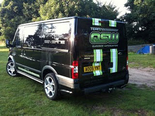 The van is a Ford Transit Sport AO09 YNT, Its very distinctive with stripes, onboard coolbox and bespoke leather upholstery (green,white, black)