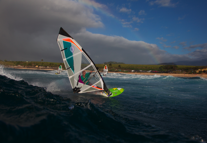 Keith Teboul’s signature 4 fin wave board. Hardcore wavesailing has transformed, and the designs of Keith Teboul are leading revolution. The Quad KT represents Keith’s personal preferences about what a true hardcore wave board should be. What has been a rarity is now the new standard. The all new QUAD KT board designs move through the water like modern high performance surf boards- fast, full rail, tight radius turns. This positive rail set allows you to finish your turns completely and with speed in the most critical sections, resulting in fluid and fast lines through areas of the wave rarely visited before. This speed and confidence you will feel riding the KT QUAD will have you driving through turns on the way to hitting sections you wouldn’t have considered before. Also, the QUAD concept allows you to ride about 5 more liters than you normally would, and this really opens up the low-end range of the board. Incredibly, at this higher volume, the board will feel looser and more stable than a more traditional lower volume board. This is modern high performance wave sailing at its leading edge. Riding the KT QUAD board is a whole new wave sailing experience.