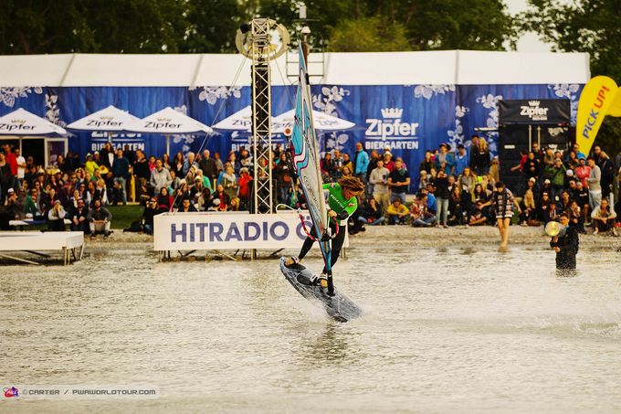 British freestyle competitor, and editor of our sister site Boardseeker, Adam Sims has taken his first EFPT podium! Over in Podersdorf whilst there was not enough wind to hold the PWA freestyle competition, the EFTP Chiemsee Tow-In Championships went down in front of huge crowds.