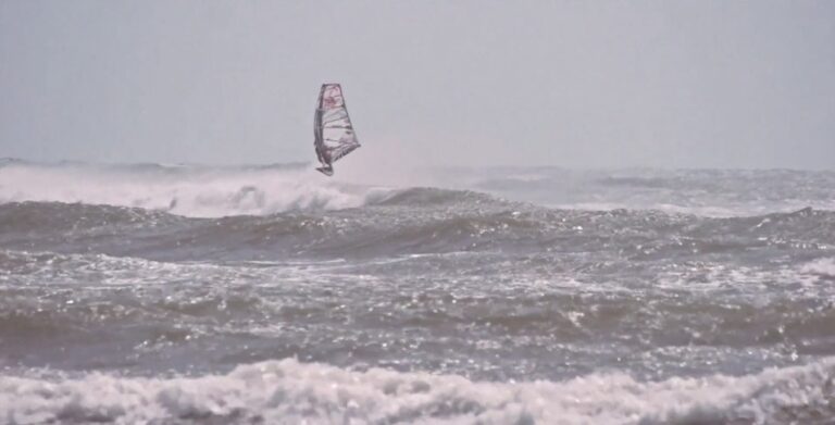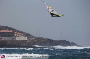Skye on FB: “Today we ran the double and I finished 7th. Pretty happy with that. Lost to Philip in the single and Ricardo in the double, with both of them pulling huge stalled doubles in my heats. I have the thank Jamie Hancock for doing all the hard work today. He took out Klaas and Dario on his way through the double, and then didn’t get the jumps he wanted against me. Against Ricardo today was total disaster, ending up destroying all my gear and sailing most of the heat totally overpowered and over boarded. A massive thanks to caddy Albert Pijoan E-88 for saving me twice in one day. Still very happy with the end result though and also Nayra went all the way today and tomorrow faces Steffi in the battle for 4th. She was ripping today, so hopefully she can keep going even further!”