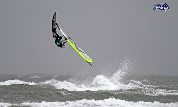 With Ant Baker helping with the judging, PWA superstar Ross Williams agreed to take part as guest rider in the Expression Session. It was clear straight away that the presence of one of the world’s best windsurfers was really pushing all those competing to raise their standard. With Ross throwing huge one-handed backies, it wasn’t long before the likes of Scotty McDowell, Jonny Freshwater and Gregor Gall were also getting round some big backwards rotations. Never one to be left out, Alan Jackson got in on the action with a sick push-loop, and a host of others sailors landed everything from big endos, to wave 360s and even the odd vulcan. With the conditions almost cross shore, there was plenty of frontside riding on show, with some big smacks and a few takas thrown in for good measure.