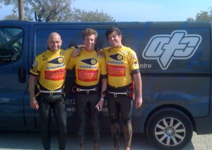 Getting ready for the first race of the day, Roger realised he had left his race vest back at the apartment, so had to make a dash back in Tris’s van, but made it back with 10 minutes to spare.