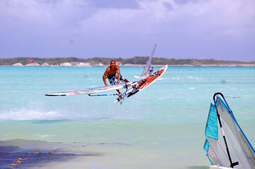 TF: I wake up, go to the Bakery than I will drive to the beach… sailing a bit , than I will have some lunch in the mid day some fish nuggets next door to the bar at sorobon / talk to my friends and some new move, or talk about, girls and you know what the boy ‘s do at the beach! Then I hit the water again to have a late session, try some new things and then I go home, send some email, see what is new in the windsurf world and try to find some sleep around 11:30 Pm