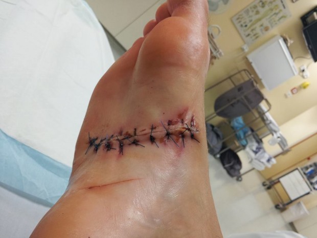 Well I have just had my first appointment since leaving the hospital last Saturday. All looks well and the tear is healing well. Two more weeks of struggling around in a camper (smaller than a people carrier) with my foot up and a cast to stop it opening!