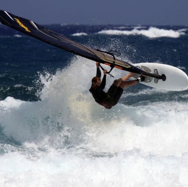 In the 90’s, there was a young wave sailor from Belgium who drove down to the Canaries, and never drove back. He took part at some of the PWA events, and he was one of the most radical on tour, who was scoring big air radical jumps! By pushing the limits of the gear, he ended up destroying his knees, feet and ankles to go bigger then the others due to some hard landings.