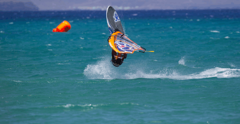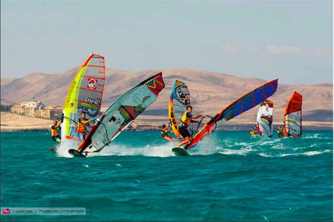 Ross Williams, gybing at PWA Fuerteventura. Image credits PWA/John Carter.