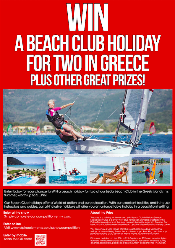 The prize includes flights, transfers, half-board catered accommodation, free use of equipment and RYA tuition at our Leda Beach Club in Pelion, Greece. Inclusive activities include windsurfing, sailing, mountain biking, stand up paddleboarding, kayaking and more! Find out more about our Leda beach Club here.
