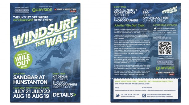 Windsurf the Wash is the first on forecast demo to hit British shores. Run by Quayside Windsurfers, the team will have a huge range of equipment available for you to use, plus much more, on whichever of the dates provides the best conditions at Hunstanton. Check below for how to make sure you don’t miss out!