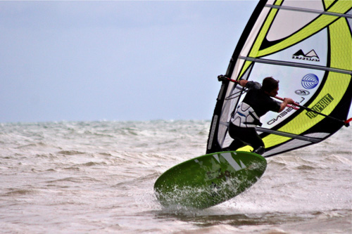 With sailors coming from the far north, east and west coasts, the UKWA Worthing event started with a sunny first day and the potential for heats to be run in the afternoon. Sadly the sea breeze ended up fighting the days prevailing wind giving unreliable and light sailing conditions. The freestyle was postponed until the Sunday, however the competitors had plenty to do with a few demo Turfdogs to hand. These land boards were in use all day, culminating in an impromptu Turfdog expression session, won by Adam Sims with Oscar Carmichael second. Special mention has to go to 14 year old Carmichael who managed a Turfdog spin loop early on in the session.