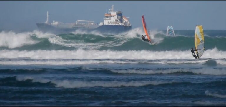Jamie Hancock is joined by fellow Brit Adam Lewis, plus Chris Friis at the Wall in Tenerife. Easier so to sail than the sometimes vicious...