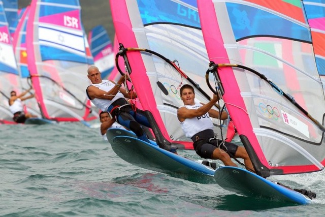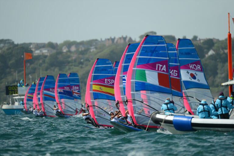 The RS:X women took to the water straight after the men, the bright pink limited edition Olympic sails reflecting the small amount of sunshine we...