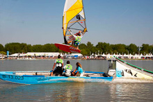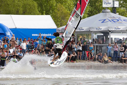Tow-in windsurfing and beach side games provided plenty of entertainment for the thousands of spectators lining the shore of Lake Neusiedl on the second day...