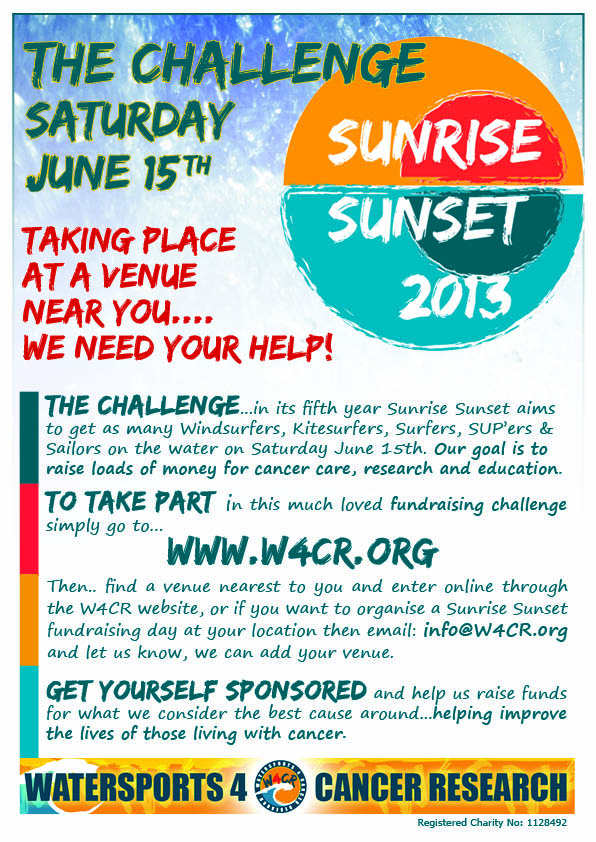 W4CR (Windsurfing for Cancer Research) announce that their 2014 Sunrise to Sunset fundraising event will take place on the 1st of June. Yet again thousands...