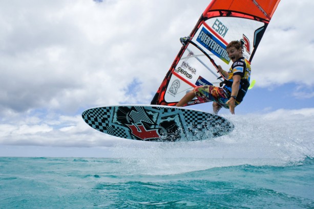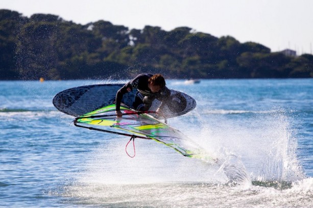 ADAM SIMS: Most people will say to get on a wide board with a small sail and start spinning in light winds, but if you are already planing then yeh for sure do this also but just start chop hopping and then pick a move you like from the following and go for it (try it on both sides): vulcan, flaka, shuv-it or forward loop.