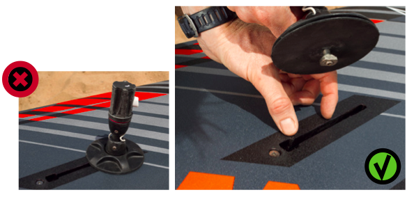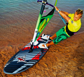 In general: If in doubt, put it in the middle, this is where the designers would recommend it for most conditions. Nevertheless, it can be an advantage in light wind conditions to put the mast foot a bit further back, this will cause the board to become more lively, the nose rides a bit higher, making the board faster. Many windsurfers still choose a position further forward. This will only make sense if you‘re riding in high-wind conditions because it keeps the nose down and reduces the boards tendency to do “wheelies“. In light wind conditions this setup may cause the nose to hit the chop more frequently, which reduces speed and riding comfort, it will also make the board feel stuck to the water and unresponsive. Just make sure you only move it 1-2 centimetres, not all the way forward or all the way back.
