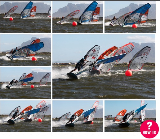 You have made it across the line, and are now approaching the first buoy at 30 knots, with a pack of other sailors right up your board-shorts, or in front and throwing up death-chop. Now is not the time to fall in, but if you think that, you probably will. Gybing under pressure is one of the key elements that will make or break your race, and is also the best opportunity to overtake.