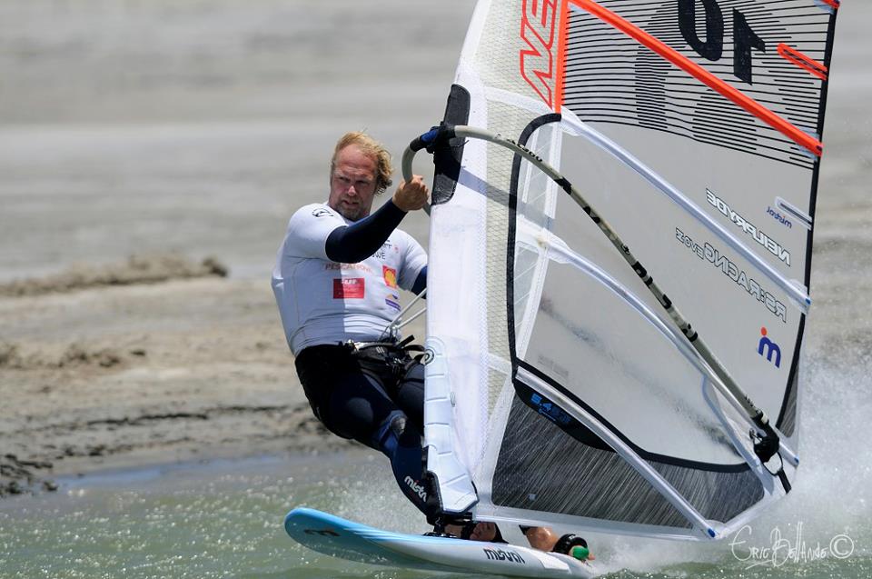 In lighter winds I have the boom at a medium height, as it help with early planing. When I get onto smaller sails and there is more wind I progressively lower the boom, whilst simultaneously lengthening the lines a little. This process has a few affects: more control (lower centre of gravity) and more fin pressure (allowing the use of a smaller fin and therefore less drag). The net result is driving the board flat and fast over distance.