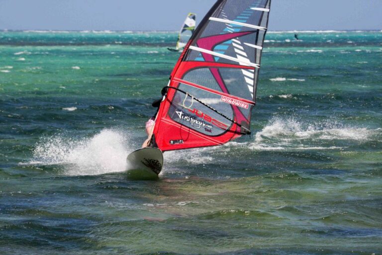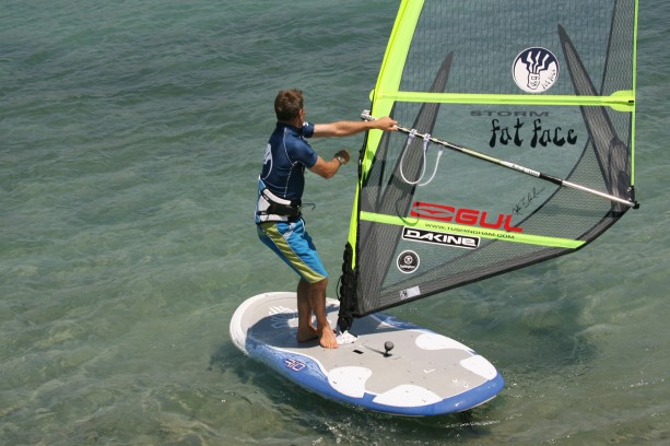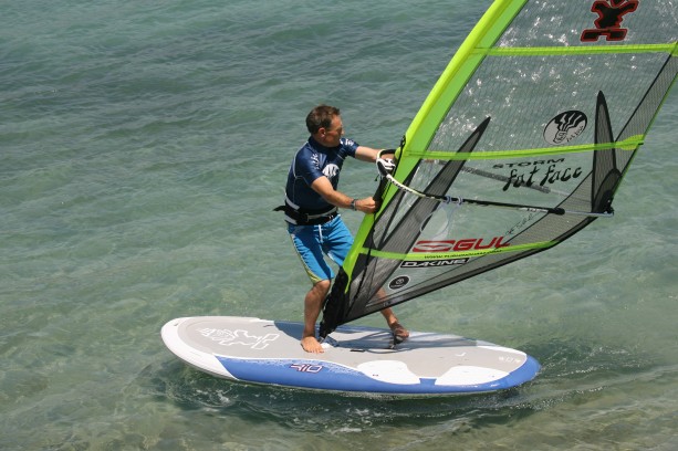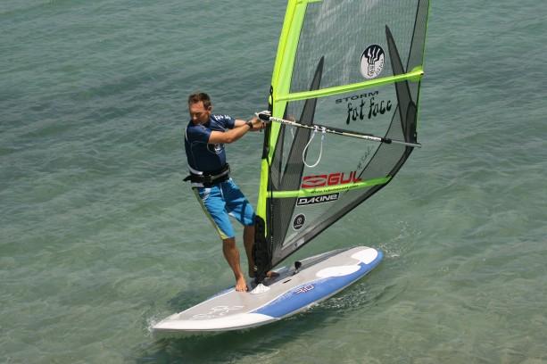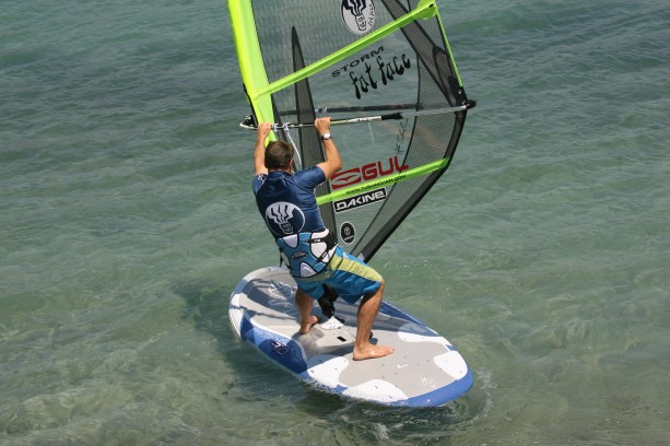 Successful tacking relies on good vision and always moving the mast in the opposite direction to the body to maintain a counter balance. You’ll find your upwind and downwind steering skills link into the beginning and end of the tack respectively. You then add in some swift footwork in the middle of the turn to tack successfully. Once mastered you’ll be able to tack very quickly on very low volume boards.