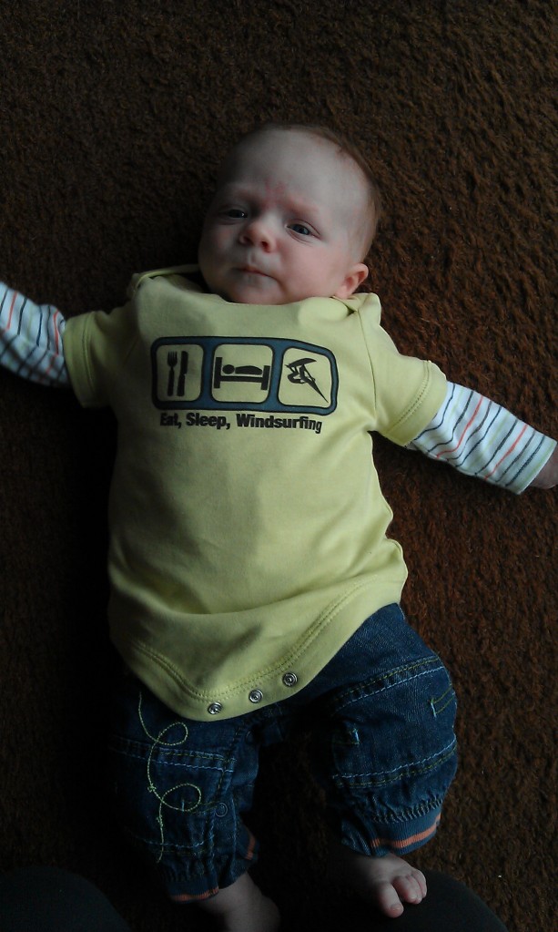 With a picture of Robbie Nash hanging above his changing mat and the water training already underway in the bath, his dad has him in the pipeline to be the next windsurfing champion!