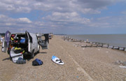 As you enter the town of Aldeburgh drive right through then across the big dirt track and the shingle spit. Park near the Martello Tower. On the left is the bump & jump beach and on the right is the flat water river.