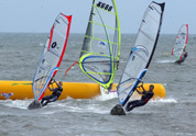 The sea floor is quite shallow around this area and so for the unwary windsurfer sailing at low tide you should watch out for a number of sand bars with fin snapping potential.