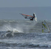 South-west, South. East/North-east is definitely sailable although it is mainly choppy windsurfing unless it’s a good Force 5 wind which can then throw up enough waves to jump off.