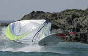 W wind funnels through the gap between the island and the mainland giving cross shore, starboard riding.