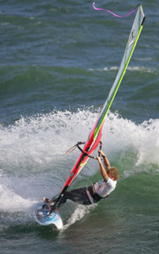 Beginners to Advanced, honest! A NE wind is perfect for flat water sailing and freestyle. Dependant on the size of the swell, you can get some lovely 5m days with 4/5ft waves, ideal for an introduction into wave riding. However, if it has been blowing for a while then watch out for mast high waves with lots of white water on the outside. Nearer to the river mouth the waves become hollow and heavy. You need to pick your day, and also pick your place to sail in the bay.