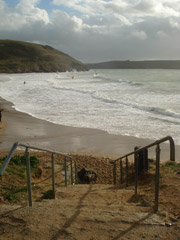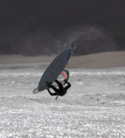 Daymer Bay is the jewel in the Cornish crown of windsurfing. It can provide flat water for blasters, speed demons, freestylers AND onshore & offshore wave riding all in one day due to the tidal range. Consequently, it is a very popular spot but because of the variety of flat water and waves there is room for everyone. They are four main areas: the main beach, the flat section in the middle of the estuary, the wave break on the far side and the aplty named ‘doom bar’ furthur out to sea. (At low tide this is almost an extension of Polzeath beach).