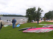 Lots: windsurfers park at Whitwell. |